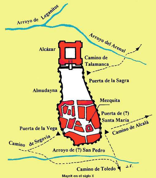 Magerit aparece citada en la Crónica de Pelayo. Mayrit es la acepción árabe y Matrice la versión cristiana posteriormente dada. El significado de dicho nombre se podría resumir de una simple forma, “-mayra” significa cauce de aguas en árabe y el sufijo romance “–it” abundancia. Puede sonar a broma que Madrid fuera nombrada de tal manera, pero es que nuestra ciudad primitiva era muy distinta a la actual.