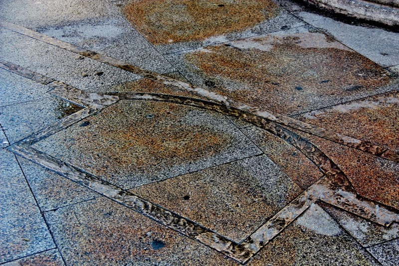Como detalle final, lo que observamos en la superficie es una imitación de una de las fuentes de los Caños, de estilo renacentista, con una inscripción que menciona todo esto. También hay una fuente con un agua que particularmente me gusta degustar cuando paso por esta zona y un detalle que suele escaparse. Si observamos el suelo en la zona cercana al caño de imitación, veremos una serie de lineas negras en las baldosas que hay por esa zona de la plaza. Si, imitan el recorrido de las fuentes de los Caños.