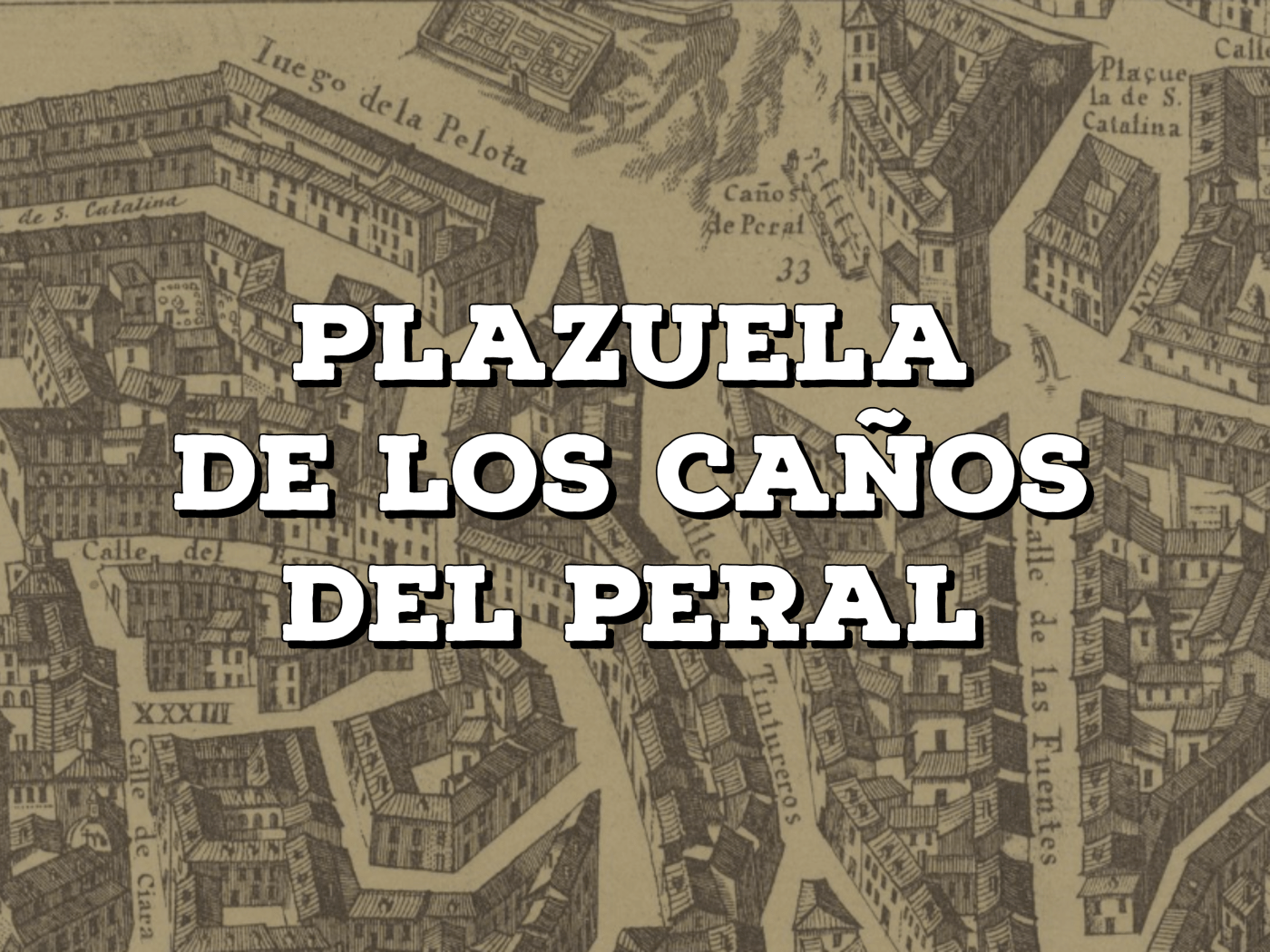 Finalmente, el Juego de la Pelota, que para muchos de los que os acercais a la historia de Madrid y su material gráfico será algo que probablemente conozcais o al menos os suene, fue una parada obligada en esta Plaza de los Caños del Peral. Ya existían otros Juegos de la Pelota, como en el Retiro u otros lugares más célebres que este, pero el de los Caños es importante, ya que sólo estaba formado por una pared trasera a unas viviendas, en las que rebotaban la pelota. Sería como una especie de pelota vasca o frontón actual. Este juego de la pelota pertenecía a Bartolomé de Santoyo, ayuda de cámara del rey, en el siglo XVI. Por desgracia no se aprecia en el mapa como debería, ya que tenemos el otro lado de dicha pared. En esta zona se especula que estaba la Puerta de Valnadú, justamente en una especie de pasadizo a la izquierda que conectaba con la Casa del Tesoro e incluso con la famosa Torre de Alzapierna o Gaona, esta situada la derecha, más próxima a las fuentes. Todo esto siguen siendo especulaciones pero ahí están dichas teorías.