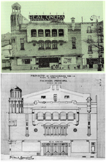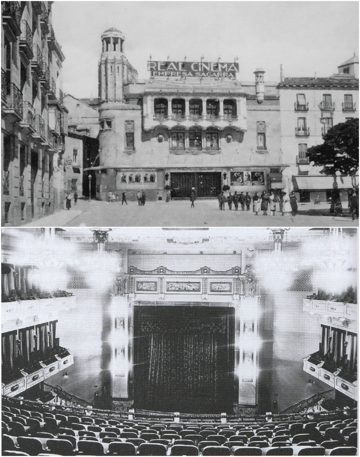 El Real Cinema abrió sus puertas el 15 de mayo de 1920, en plena euforia por el nuevo espectáculo cinematográfico. Fue inaugurado por el rey Alfonso XIII, lo que da idea de la relevancia que se quiso otorgar al proyecto desde el principio. El edificio, diseñado por el arquitecto Teodoro de Anasagasti, combinaba monumentalidad y modernidad: contaba con un millar de butacas, decenas de palcos y, pocos años después, incorporó una terraza destinada a cine de verano. No era solo una sala de proyección; era un espacio elegante, con bar y salones donde el público acudía tanto a ver películas como a dejarse ver.