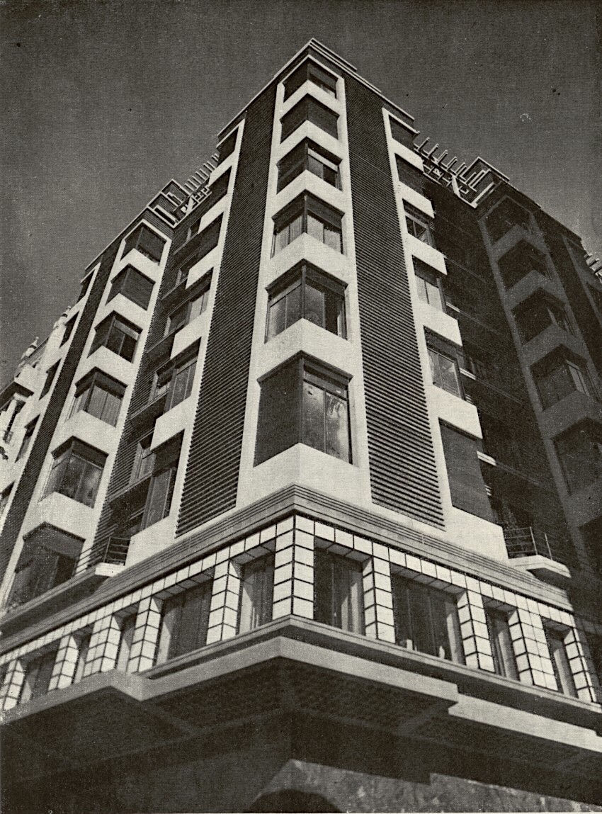 El edificio se construyó en ladrillo y piedra artificial para los entrepaños, basamento y pórticos. Su juego de volúmenes era la idea del edificio, cuerpos de dobles ventanales en las esquinas combinados con planos retranqueados de grandes ventanales.