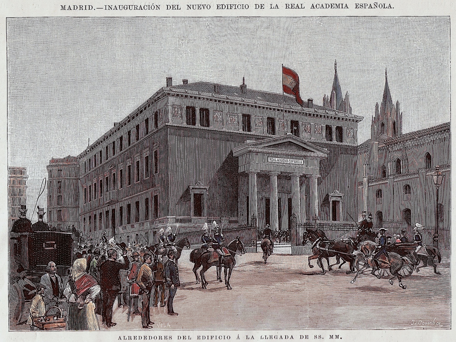 La Real Academia Española fue fundada en 1715 por iniciativa de don Juan Manuel Fernández Pacheco, marqués de Villena, fundación aprobada en la Real Cédula de Felipe V, expedida el 3 de octubre de 1714, por la que se autorizaba a la Academia para formar sus estatutos, y fueron concedidos varios privilegios a los académicos y a la Corporación, que hubo de adoptar como divisa un crisol puesto al fuego, con la leyenda que dice: «Limpia, fija y da esplendor», como emblema de lo que debía hacer por la pureza y elegancia del habla castellana.