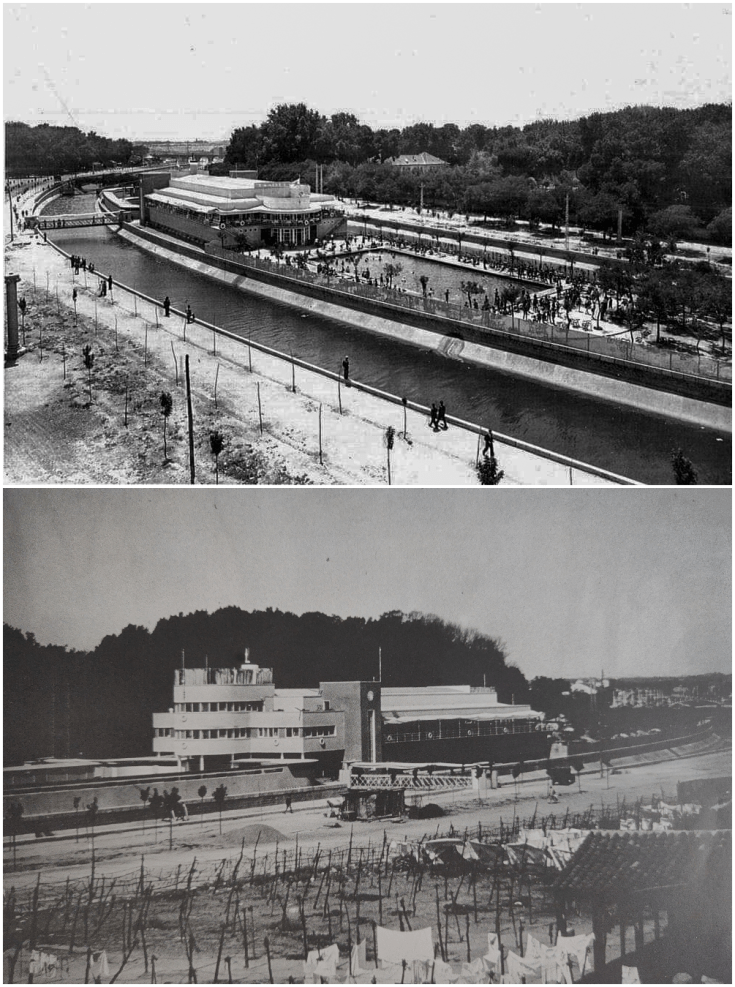 A comienzos de los años treinta, Madrid buscaba modernizarse y reconciliarse con su río. En ese contexto nació La Isla, inaugurada en 1931-1932 sobre una pequeña isla natural situada entre los actuales puentes de la Reina Victoria y del Rey. El proyecto fue obra del arquitecto Luis Gutiérrez Soto, figura clave del racionalismo madrileño, que concibió el edificio como un auténtico “barco” anclado en medio del Manzanares. No era solo una metáfora: su silueta, alargada y blanca, evocaba claramente la de un transatlántico.