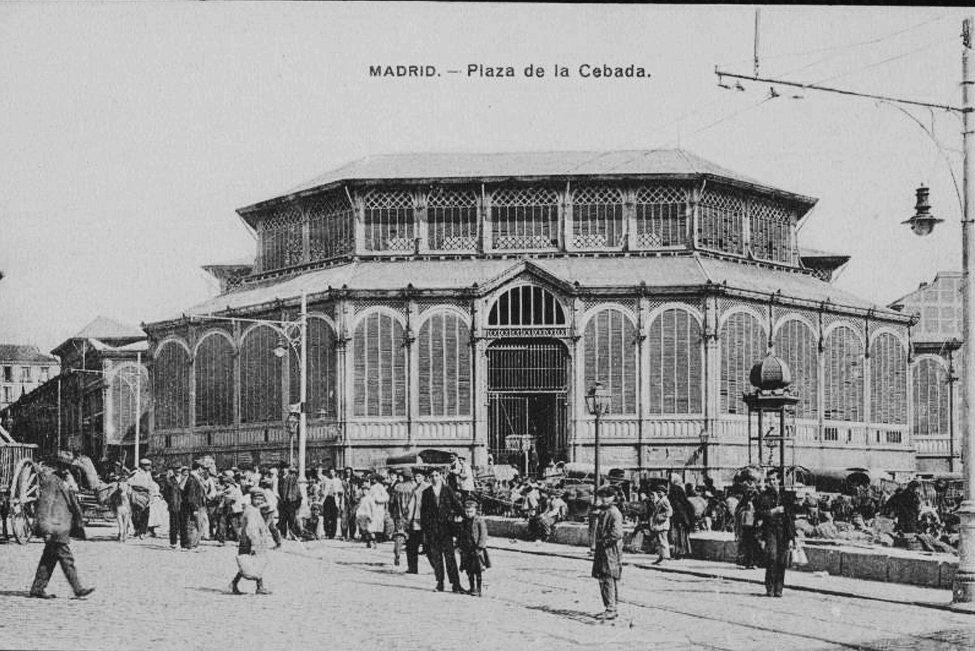 Aquí se construyó el Mercado de la Cebada, con su magnífica arquitectura de hierro. En 1870 fue colocada la primera piedra para su construcción, y en 1875 se abría al público este local de abastos, contando con una superficie de 6323 metros cuadrados. El espacio restante de la plaza hasta la calle del Humilladero se destinó a depósito al aire libre de frutas y legumbres.
