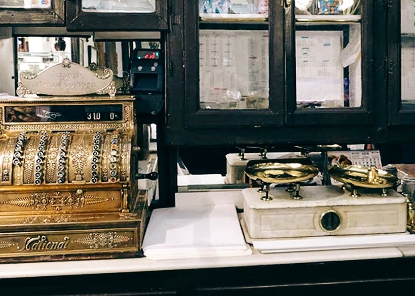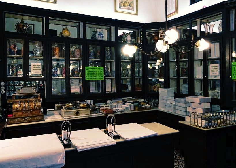El local ha sido objeto de numerosas reformas, pero se ha conservado el mobiliario original, con el mostrador de mármol y madera, máquina registradora antigua y una balanza clásica de dos platos.