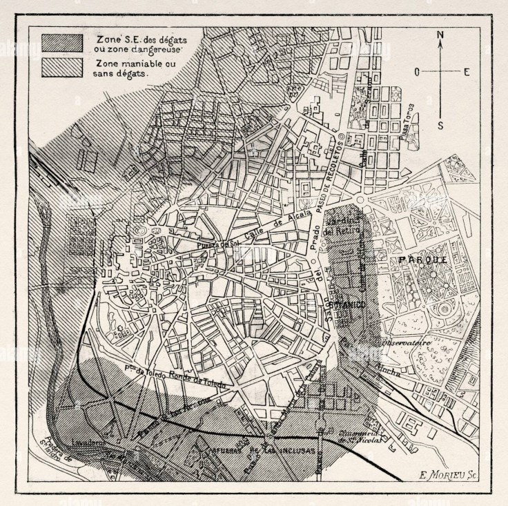 El fenómeno continuó su trayectoria hacia el noreste, afectando zonas que hoy corresponderían a Las Ventas y Canillas, donde fue perdiendo fuerza hasta disiparse. Para entonces, Madrid era una ciudad sumida en el caos. Las calles estaban cubiertas de escombros, los servicios de emergencia eran insuficientes y la población intentaba rescatar a los heridos con medios muy limitados.
