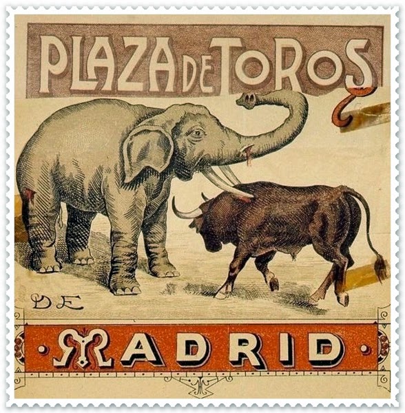Viajamos hasta1865, el parque de atracciones de los Campos Elíseos, situado en la confluencia de O’Donnell con Alcalá, anunciaba un espectáculo terrible: «Extraordinario combate entre un elefante y tres toros».