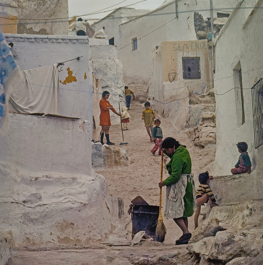 El color. En la década de 1960, Pérez Siquier abandonó la confortable estética del blanco y negro –que ya dominaba– y la película de 35 mm para comenzar a utilizar una cámara de mayor formato, una Rolleiflex, cargada con película de 6 x 6 mm en color. Con ella inmortalizó una Chanca que es la misma pero diferente. No se trata solo de un cambio cromático. La nueva mirada sobre La Chanca tiene entidad propia. El punto de vista cambia, también el encuadre, las superficies se amplían y comienzan a tomar protagonismo. Pérez Siquier se fue alejando también de la vida cotidiana de sus habitantes que, de aparecer en sus imágenes, nunca lo hacen de manera gratuita.