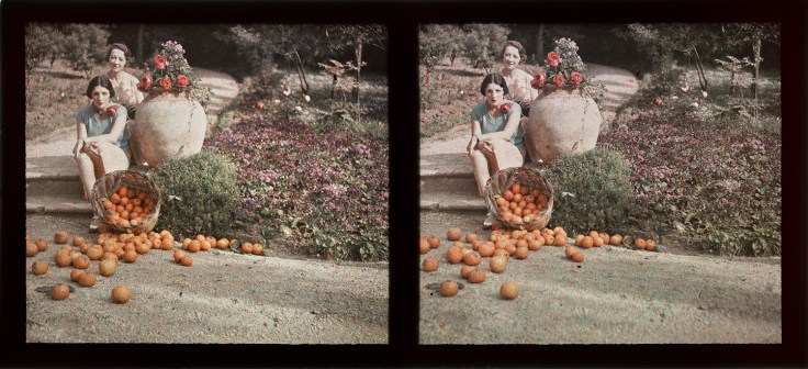 La exposición está estructurada en 3 espacios fundamentales. En el primero se muestran autocromos estereoscópicos que Lartigue empezaría a realizar desde 1912. Podemos ver a través de unas lentes este maravilloso efecto visual que genera una sensación 3D. Al igual que sus imágenes contemporáneas en blanco y negro, sus primeros autocromos ilustran su vida cotidiana y sus recuerdos. Lartigue afirmó en una entrevista de principios de la década de 1970 que había realizado cerca de 300 autocromos, de los que se conservan 86 placas.