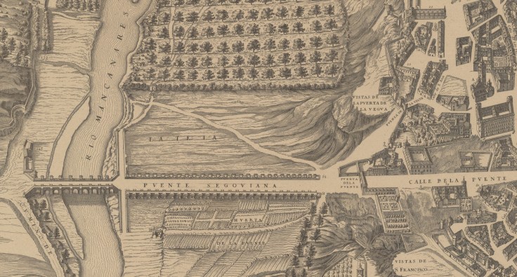La Puerta de la Vega fue junto con la de Santa María y la Sagra una de las primeras construidas de nuestra ciudad. Mencionada en las fuentes originales como Alvega, este acceso comunicaba la fortaleza con “la Vega” del Manzanares. Fue la más relevante defensivamente hablando ya que era la que veían los atacantes al intentar capturar la ciudad. La historia de esta puerta da para un extensísimo artículo, lo cual no es mi intención. Vengo a hablar de la “nueva” Puerta de la Vega.