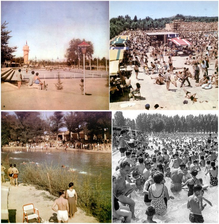 En 1958, se incrementó la oferta deportiva en este espacio con la inauguración de tres piscinas al aire libre, un campo de fútbol de hierba y una pista de atletismo. En 1959, se añadió iluminación al frontón, las canchas de baloncesto y el parque infantil. El arquitecto Francisco de Asís Cabrero unificó las tres piscinas existentes en una sola, creando una superficie acuática artificial de 7.145 m², seis veces mayor que una piscina olímpica y apenas unos metros más pequeña que un campo de fútbol, convirtiéndola en la mayor piscina al aire libre de Europa en ese momento.