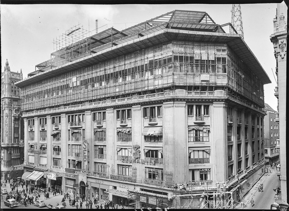 Pero el edificio no quedó vacío. Una parte fue ocupada por SEPU, la Sociedad Española de Precios Únicos, fundada por los suizos Henry Reisembach y Edouard Worms. SEPU ofrecía precios accesibles y se convirtió en un referente del comercio popular en Madrid. No obstante, su historia estuvo marcada por la hostilidad política: durante la Segunda República y los primeros años del franquismo, la Falange la acusó de explotación y, debido a los orígenes judíos de sus fundadores, fue objeto de ataques y vandalismo. Aun así, SEPU sobrevivió décadas y se convirtió en un lugar emblemático para varias generaciones de madrileños hasta su cierre en 2002.