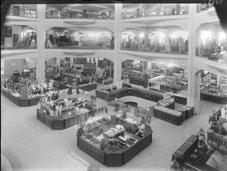 Las obras se prolongaron hasta 1923, retrasadas por huelgas y convulsiones políticas, pero el 3 de enero de 1924 los Grandes Almacenes Madrid‑París abrieron con una ceremonia que reunió a la familia real. Alfonso XIII, la reina Victoria Eugenia y la infanta Isabel presenciaron la inauguración, mientras la prensa y la alta sociedad celebraban la llegada de un comercio moderno y lujoso. En sus plantas se ofrecía de todo: moda, muebles, perfumería, lencería, papelería y un elegante salón de té donde las clientas podían reunirse y disfrutar de música selecta. Sin embargo, el esplendor no bastó para sostener un negocio que, un año después, ya acumulaba pérdidas significativas. El público madrileño no respondió al lujo elitista de la manera esperada, y Madrid‑París cerró finalmente en 1934.