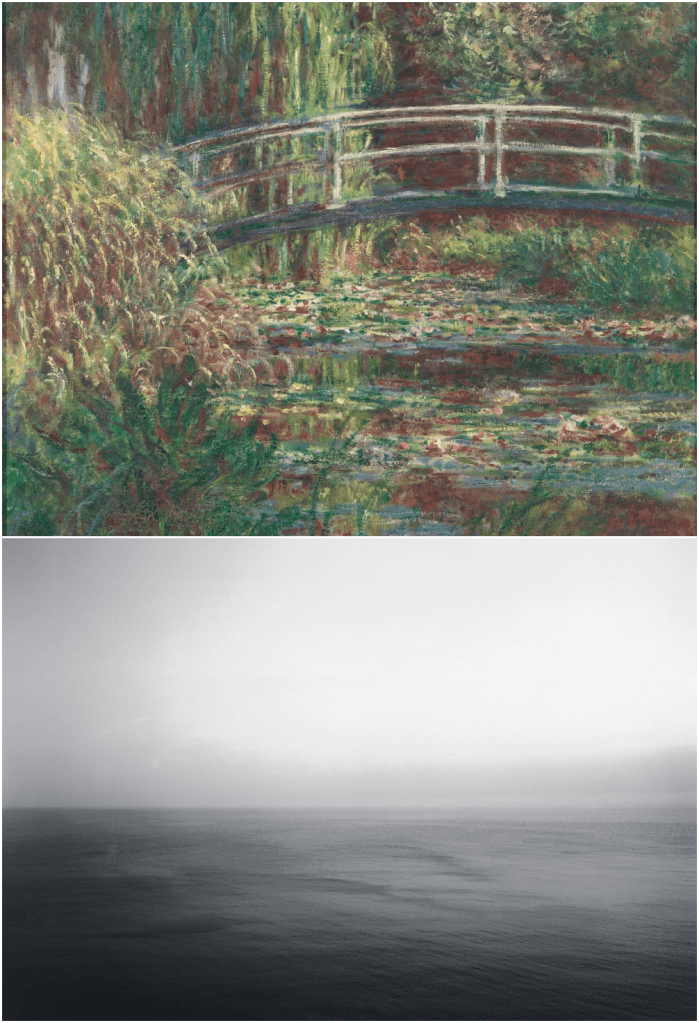 Coproducida por la Fundación La Caixa junto a instituciones francesas como el Musée de l’Orangerie y el Musée d’Orsay, la exposición traza un recorrido que atraviesa más de un siglo de arte. El punto de partida simbólico se encuentra en las atmósferas vibrantes de Claude Monet, cuyos célebres nenúfares desdibujan contornos para convertir la pintura en experiencia sensorial. En sus lienzos, el desenfoque no es descuido, sino una decisión consciente que transforma la percepción en emoción.